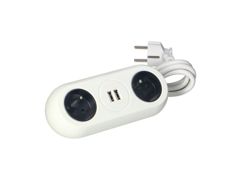 Prelungitor de masă alb cu încărcare USB