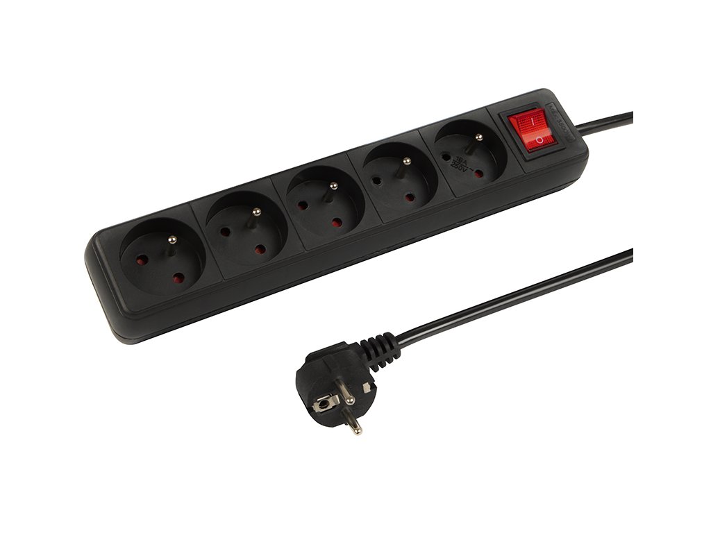 Prelungitor electric PR-570WSP 5-Prize cu împământare+întrerupător 10m negru (3x1,5mm)