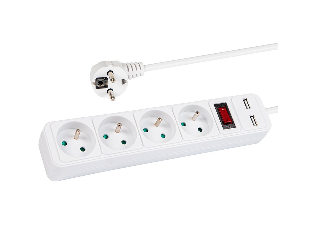 Prelungitor rețea PR-470WSP/USB 4-Prize+USB cu împământare+comutator 3m ALB 3x1,5mm