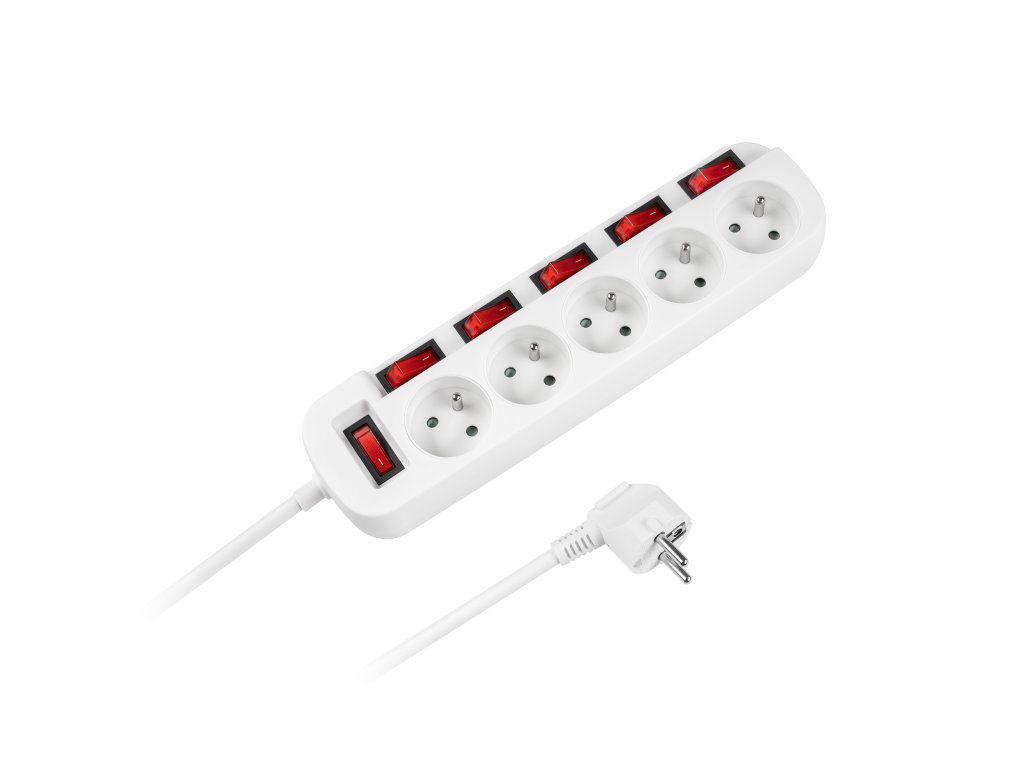 Prelungitor rețea Rebel cu 6 comutatoare 5 prize - 3m