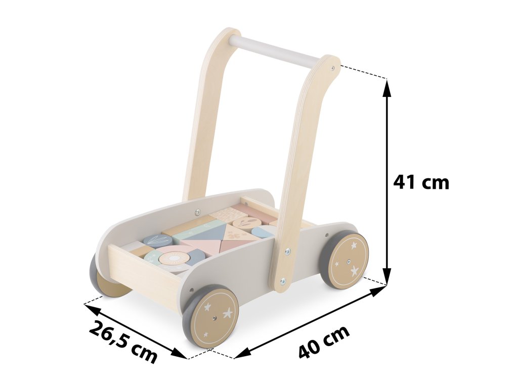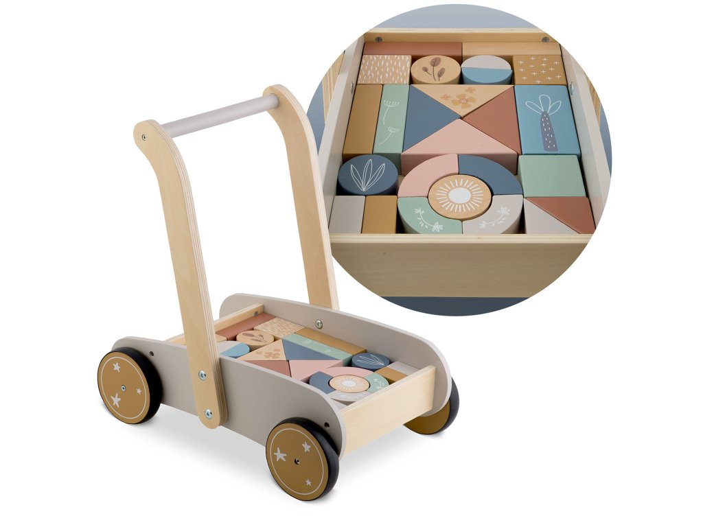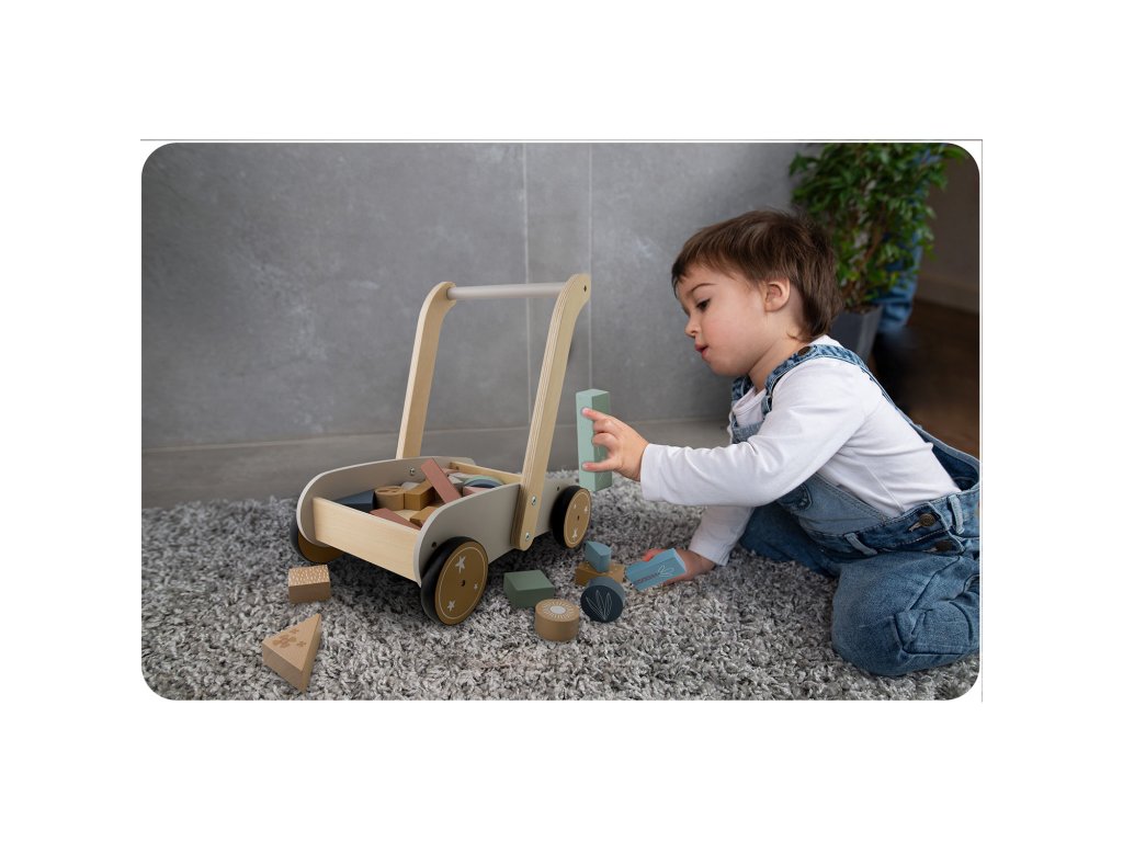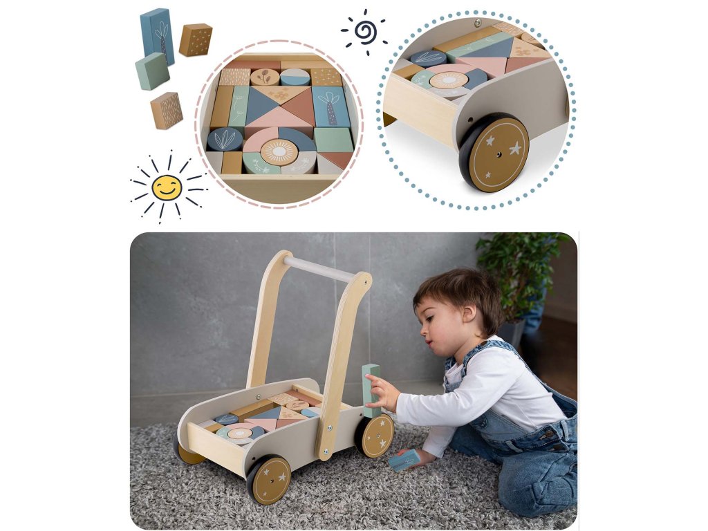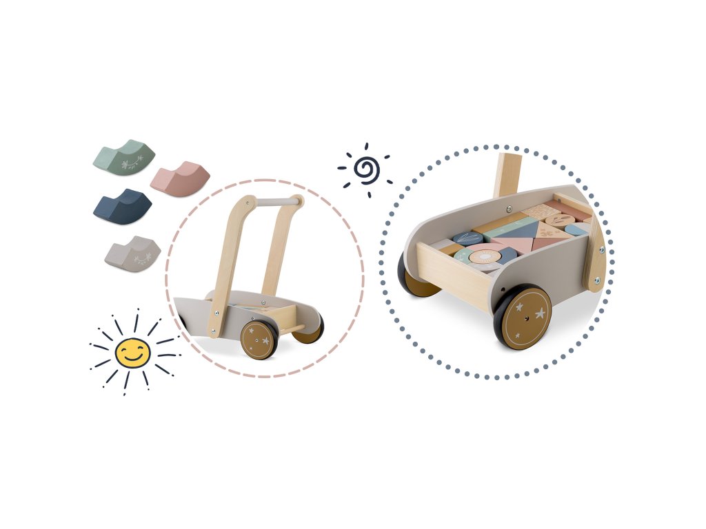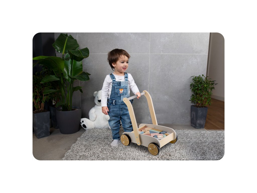 Permite copilului să mute ușor jucăria, susținând jocul activ și dezvoltarea abilității de a merge.