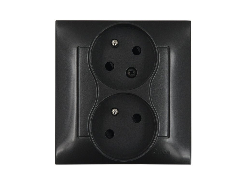 Priză 250 V Simon 54 dublă oblică cu obturatoare antracitSpecificație: