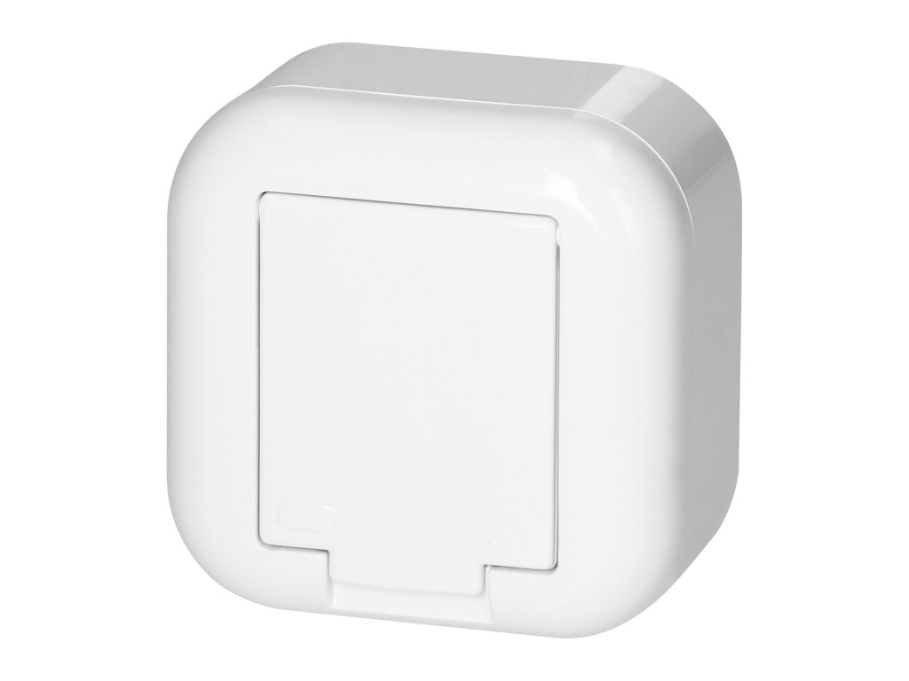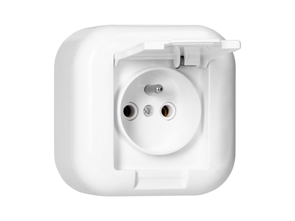 Priză aplicată simplă 2P+E cu capac, 16A, 250V, FAN, albă