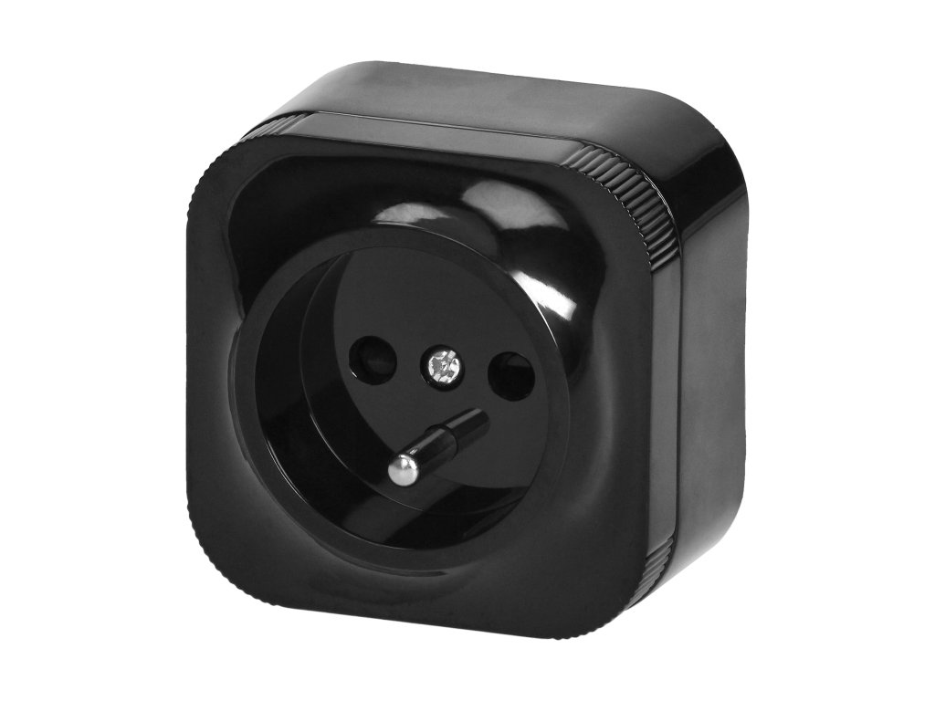 Priză electrică aparentă neagră 2P+Z, 10 buc IP20