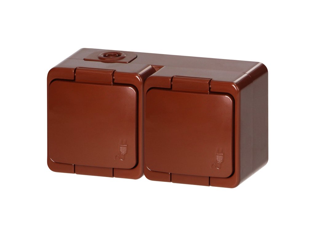 ##Priză dublă aplicată 2x2P+E, rezistentă la stropire cu capac, IP44, SMART, maro##Parametri suplimentari