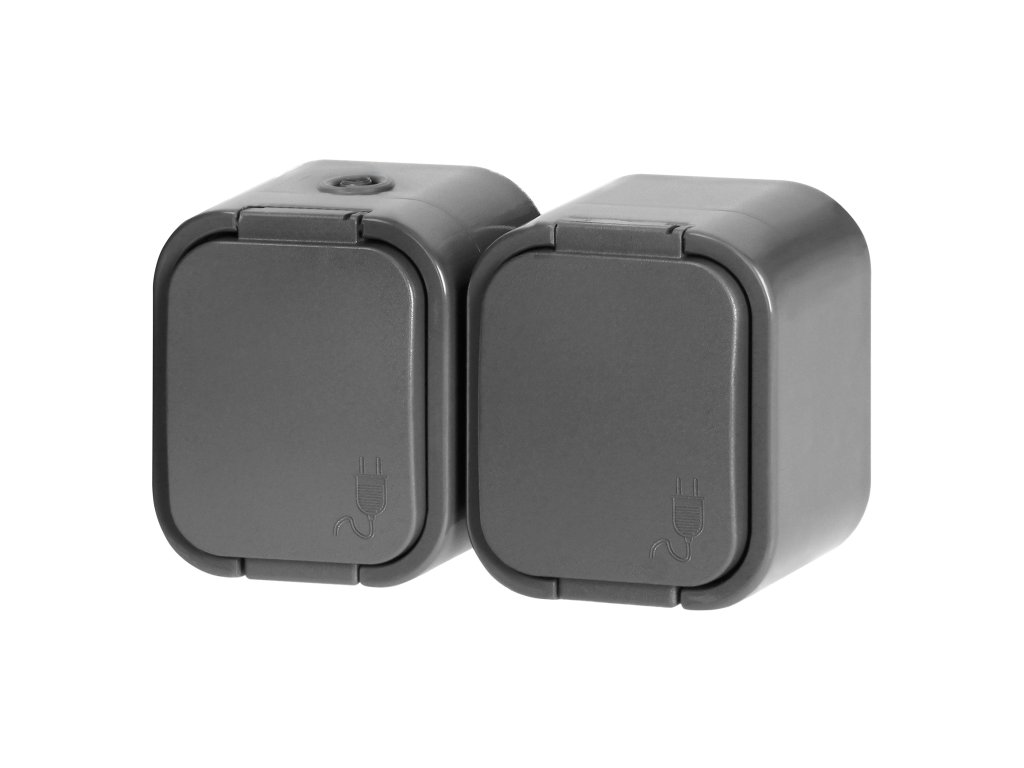 Seria B2 de prize și întrerupătoare, cu un grad de protecție IP54, rezistentă la praf și umiditate. Seria este caracterizată de un design atemporal și o carcasă robustă. Perfectă pentru instalare în unități industriale și gospodării. Întrerupătoarele sunt echipate cu conectori rapizi, iar prizele cu conexiuni tradiționale cu șuruburi.Priză dublă de tip francez 2x2P+E, rezistentă la stropire cu capac. Proiectată pentru montare pe suprafață. Va fi potrivită oriunde este necesară protecția împotriva prafului și a stropilor de apă (IP54).