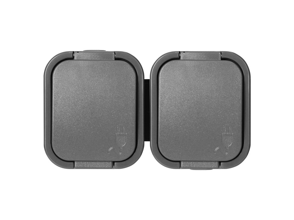 Priză dublă aplicată 2x2P+E, rezistentă la stropire cu capac B2, IP54, NT-6B2, gri