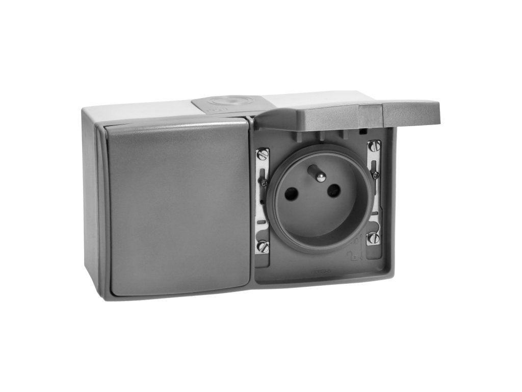Priză dublă AQUATIC PRO IP 55 gri/grafit.