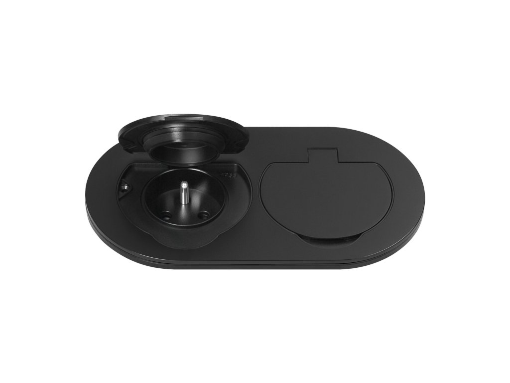 Gradul înalt de protecție IP55 asigură că produsul este rezistent la praf și jeturi de apă și poate fi utilizat timp de mulți ani. Priza este realizată din aliaj de zinc durabil și plastic de înaltă calitate pentru a garanta funcționarea fiabilă. Finisajul negru îi conferă un aspect estetic. Un capac de protecție încorporat protejează suplimentar prizele de praf și umiditate. Capacul se deschide la un unghi de 110°, permițând accesul convenabil la prize.