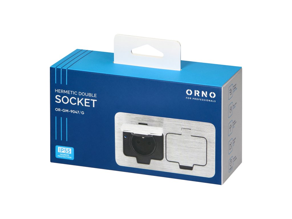 - Grad de protecție IP55: Datorită acestui grad înalt de protecție, priza dublă etanșată este rezistentă la pătrunderea apei și a prafului, ceea ce o face potrivită pentru utilizarea în condiții dificile, cum ar fi băi, garaje sau spații exterioare.