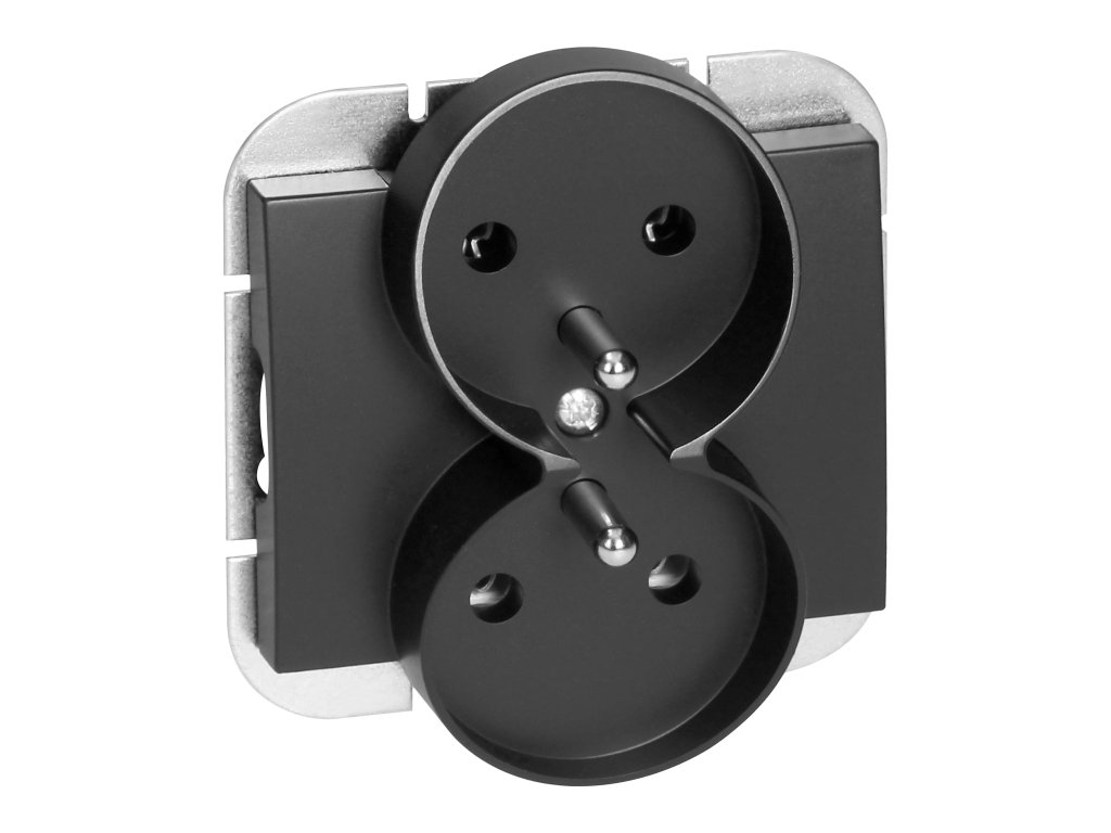 Seria modulară cu sistem de placă cadru. O serie de întrerupătoare și prize moderne care se armonizează cu interioarele originale de designer. Mecanismul modern de conectare rapidă al întrerupătoarelor (firele se conectează prin introducerea lor direct în corp) oferă o instalare și o îndepărtare sigură a firelor. Prizele sunt echipate cu conexiuni tradiționale cu șuruburi. Designul intern al terminalelor garantează o conectare sigură a firelor de la 0,75 mm² la 2,5 mm². Grila solidă și robustă a plăcii de montaj și elementele speciale de montare permit o instalare stabilă și sigură în cutie.Priză dublă de tip francez, 2x2P+E. Proiectată pentru montaj îngropat într-un sistem de placă cadru. Trebuie utilizată în interior (IP20).