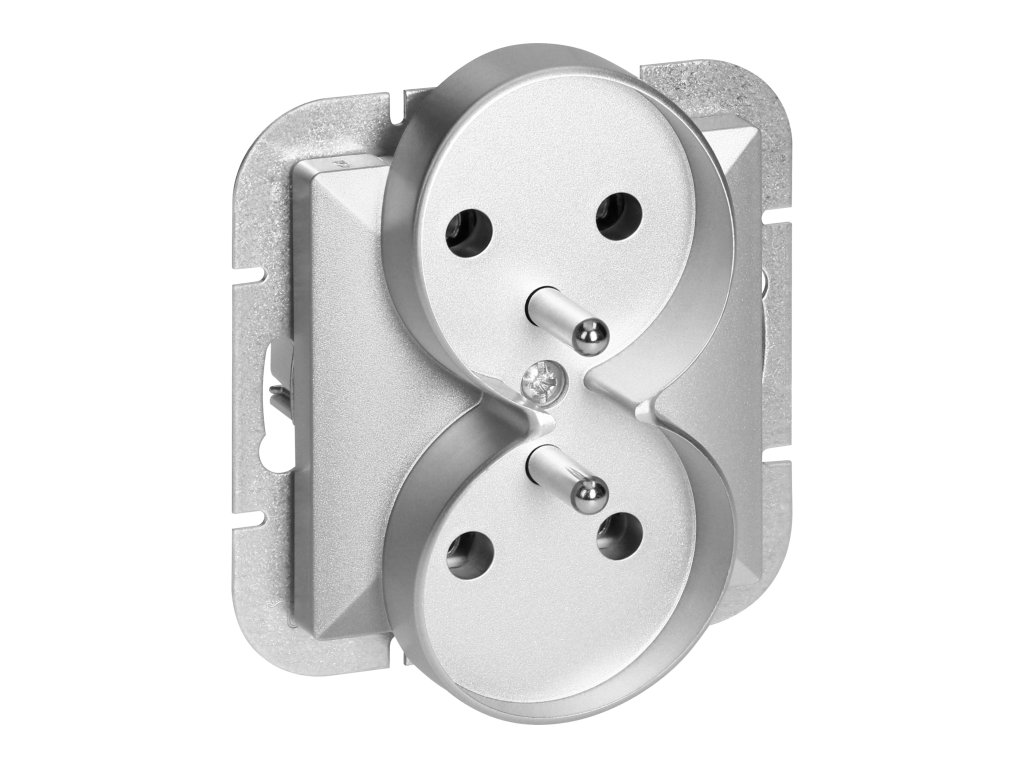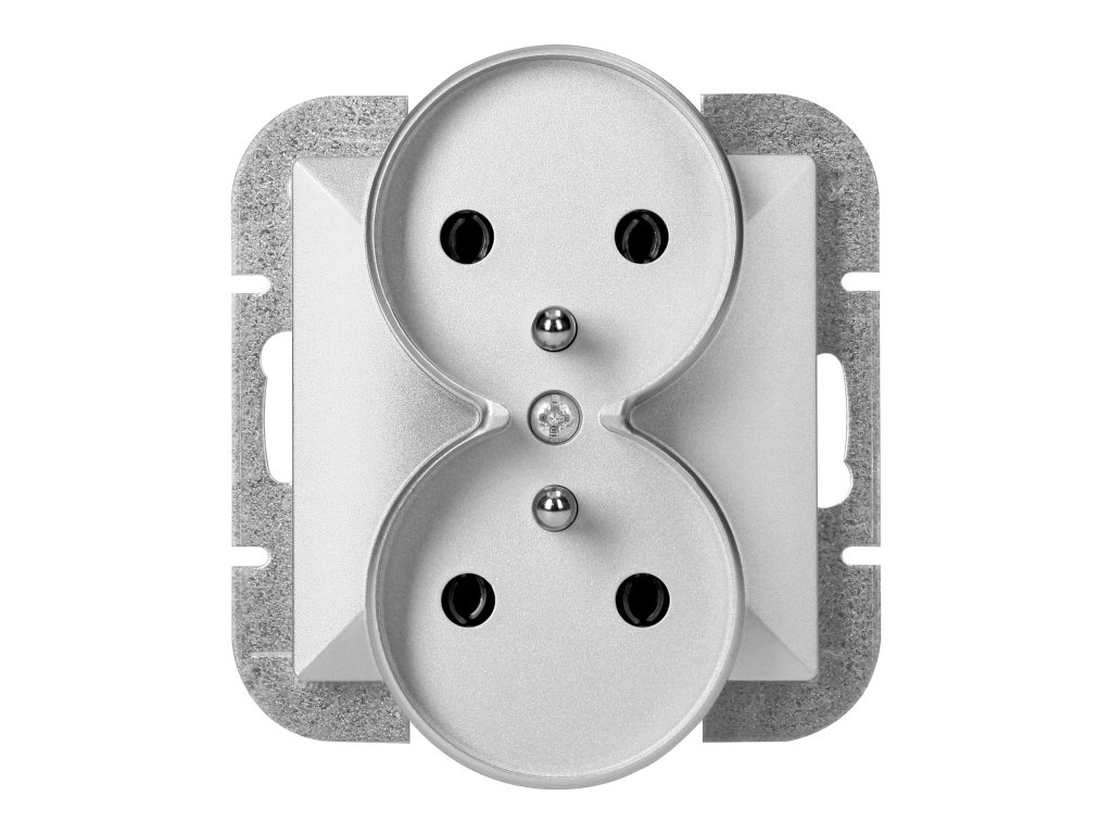 Seria modulară cu un sistem de plăci simetrice pentru rame (pentru 1-, 2-, 3-, 4-, 5-module) care permite montarea produsului atât în poziții orizontale, cât și verticale. Mecanismul modern de cuplare rapidă (firele sunt conectate prin împingerea directă în corp) asigură o instalare și o eliminare a firelor securizată și sigură. Prizele sunt echipate cu conexiuni tradiționale cu șuruburi. Designul intern al terminalelor garantează conexiuni sigure ale firelor de la 0,75 mm² la 2,5 mm². Grila de fixare puternică și robustă și elementele de auto-retragere de înaltă calitate permit o instalare stabilă și sigură în cutie. Elementele speciale de arcuri facilitează potrivirea ramei în corp.Priză dublă de tip francez, 2x2P+E. Proiectată pentru montaj îngropat într-un sistem de plăci pentru rame. Ar trebui folosită în interior (IP20).