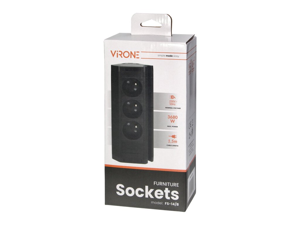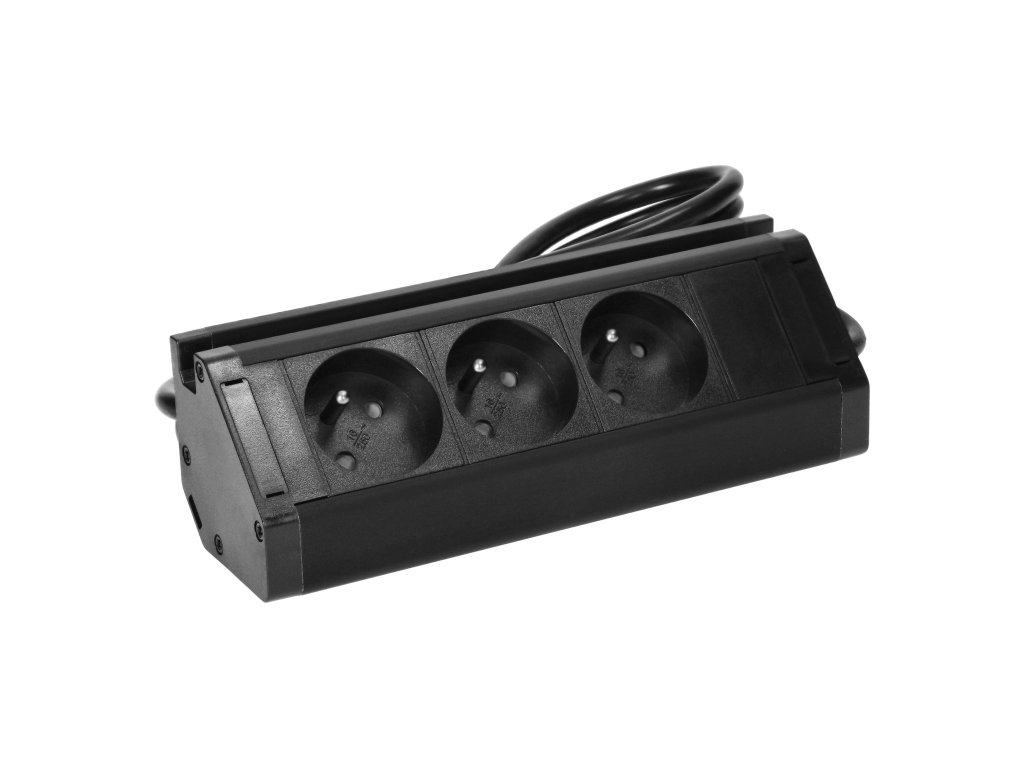 Priză de mobilier neagră cu suport, cablu de 1,5 m