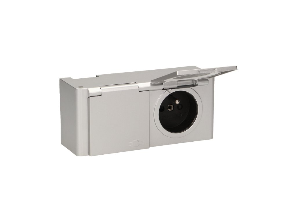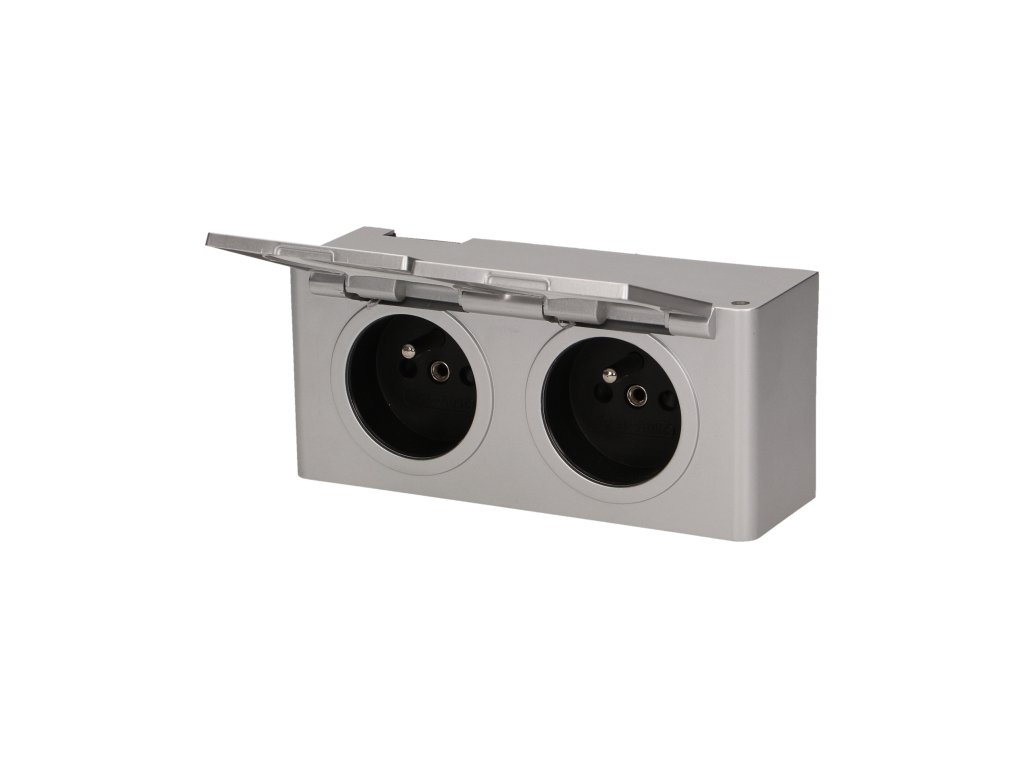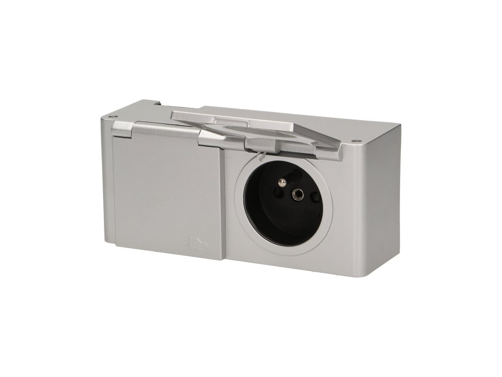 Priză etanșă IP44, 2x2P+E, argintie
