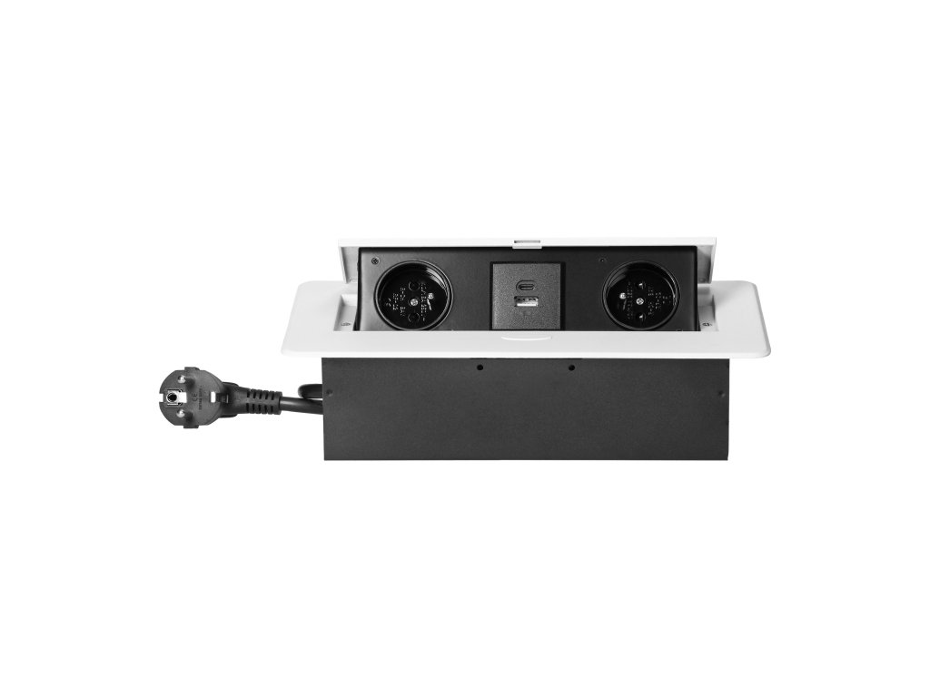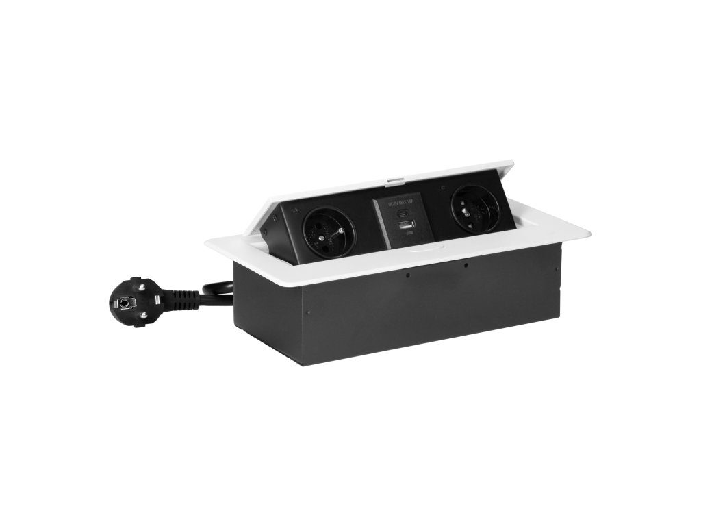 Priză încastrată cu USB, albă, cablu de 1,5m