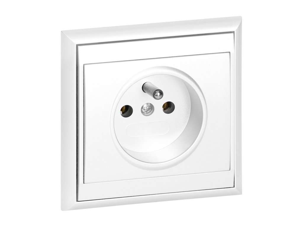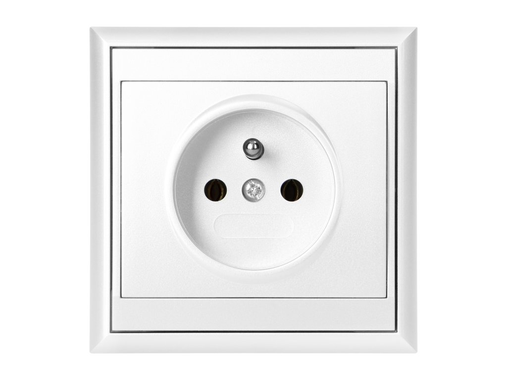 Priză simplă de tip francez, 2P+E. Proiectată pentru montare îngropată. Ar trebui să fie utilizată în interior (IP20).
