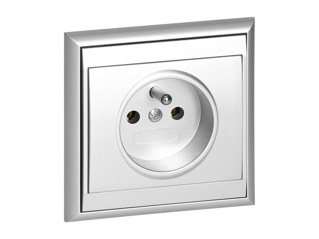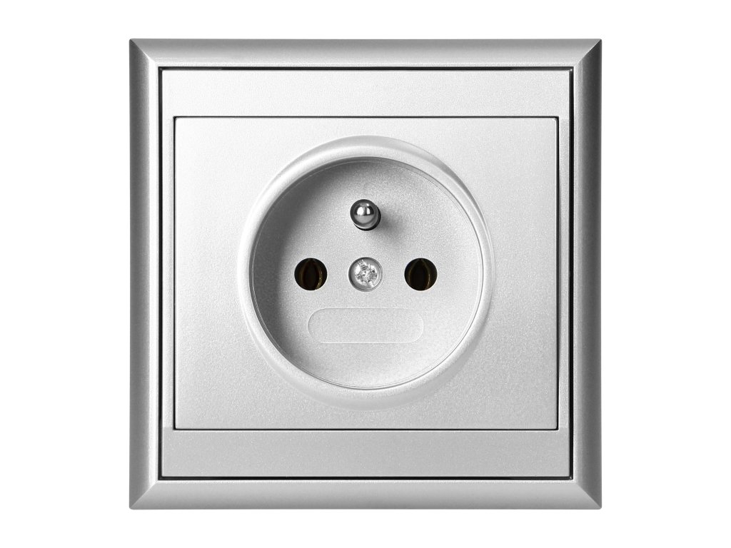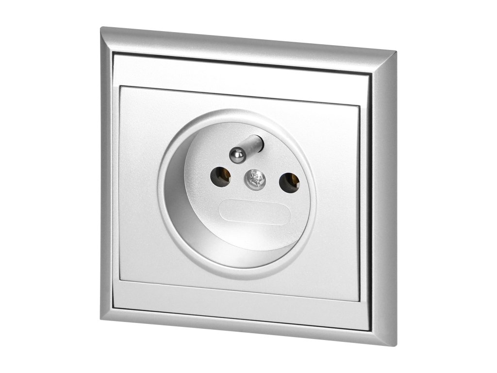 Priză încastrată simplă 2P+E Luna, 16A, 250V, PT-16L, argintiu