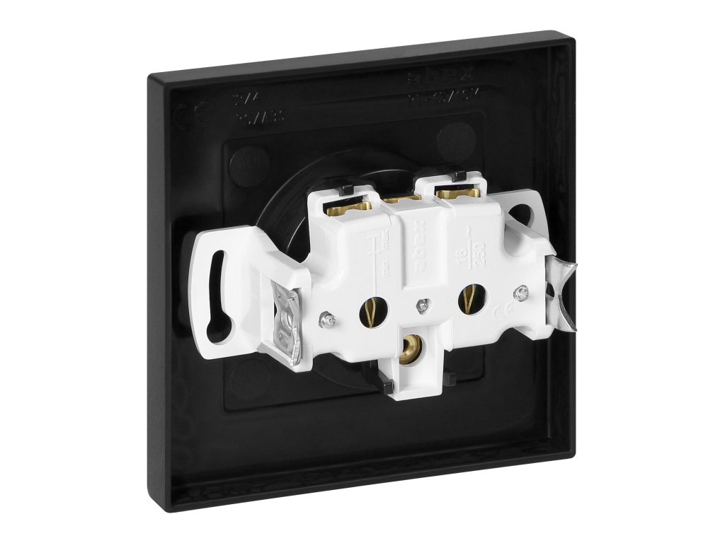 Priză încastrată simplă 2P+E Malta 16A, 250V, PT-16M, negru mat