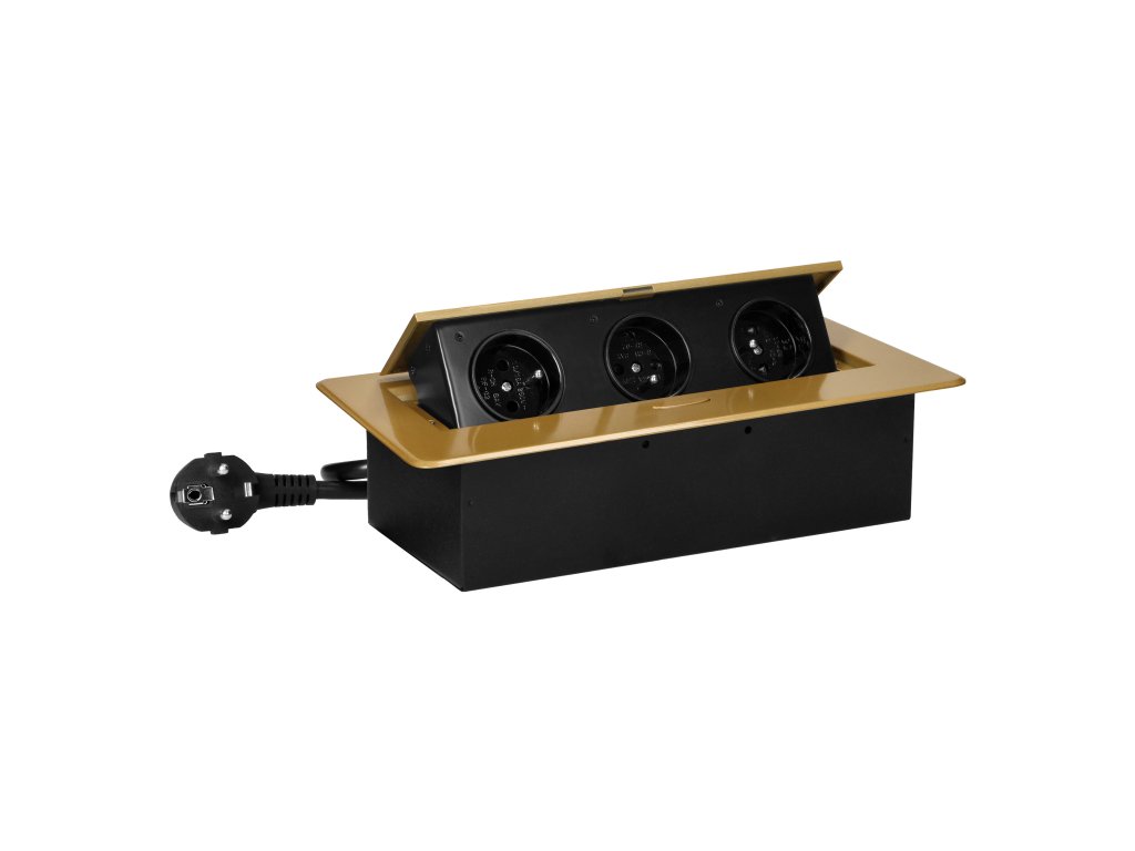 Priză pentru mobilier 3x2P+E, aurie, cablu de 1.5m