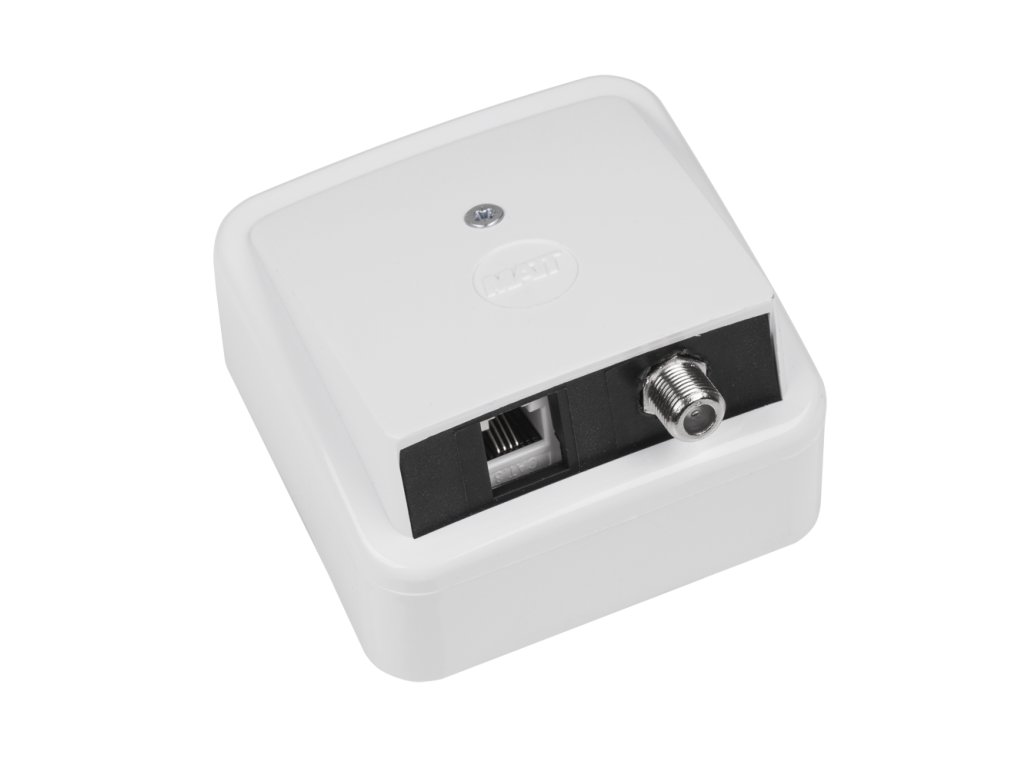 priză universală de abonat terminată cu conector F și priză telefonică RJ12; tip SPA-FT cu ieșire înclinată, care oferă o grosime de doar 27 mm pentru montare îngropată;dimensiuni de 75x75 mm și înălțime de 52 mm/suprafață sau 27 mm/suprafață;