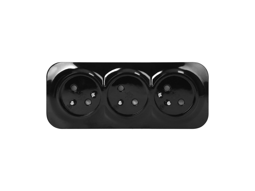 Priză triplă neagră IP20 16A 230V