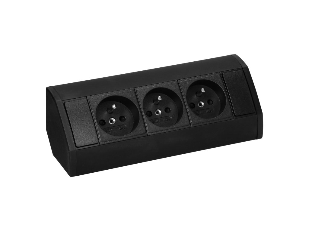 Priză triplă neagră pentru mobilier 3x230V
