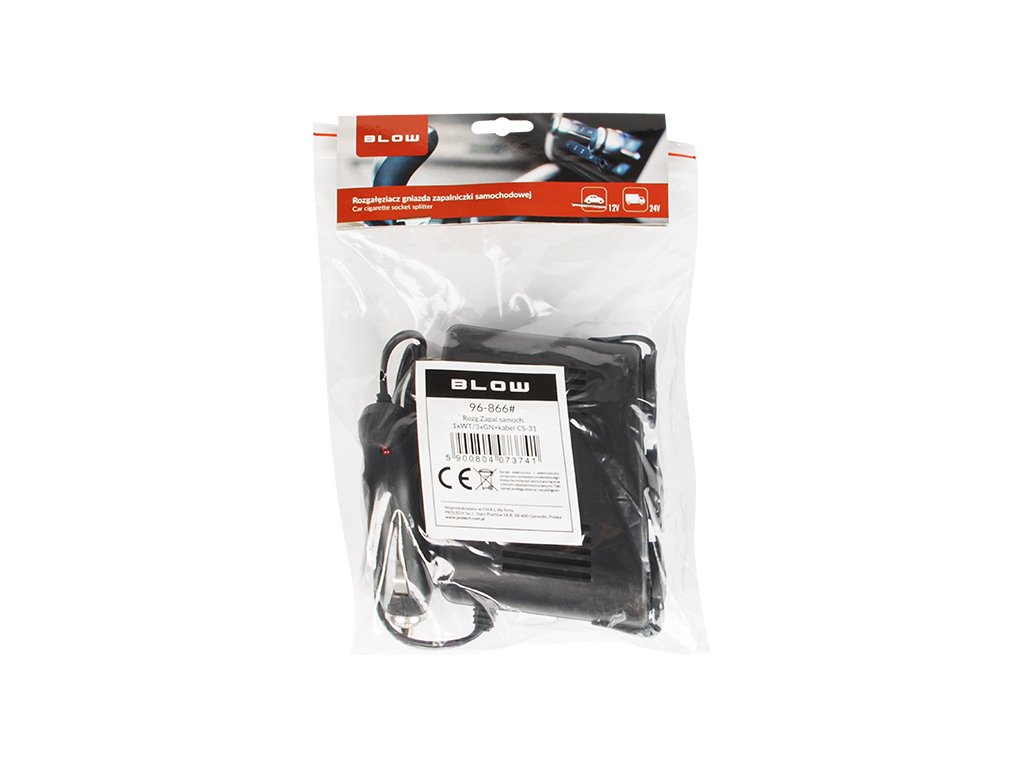 12V și 24V în automobile. Ștecherul este potrivit pentru prizele standard ale brichetelor auto cu diametrul de 21 mm. Splitter-ul are protecție la scurtcircuit sub forma unei siguranțe de sticlă rapide și interschimbabile WTA.