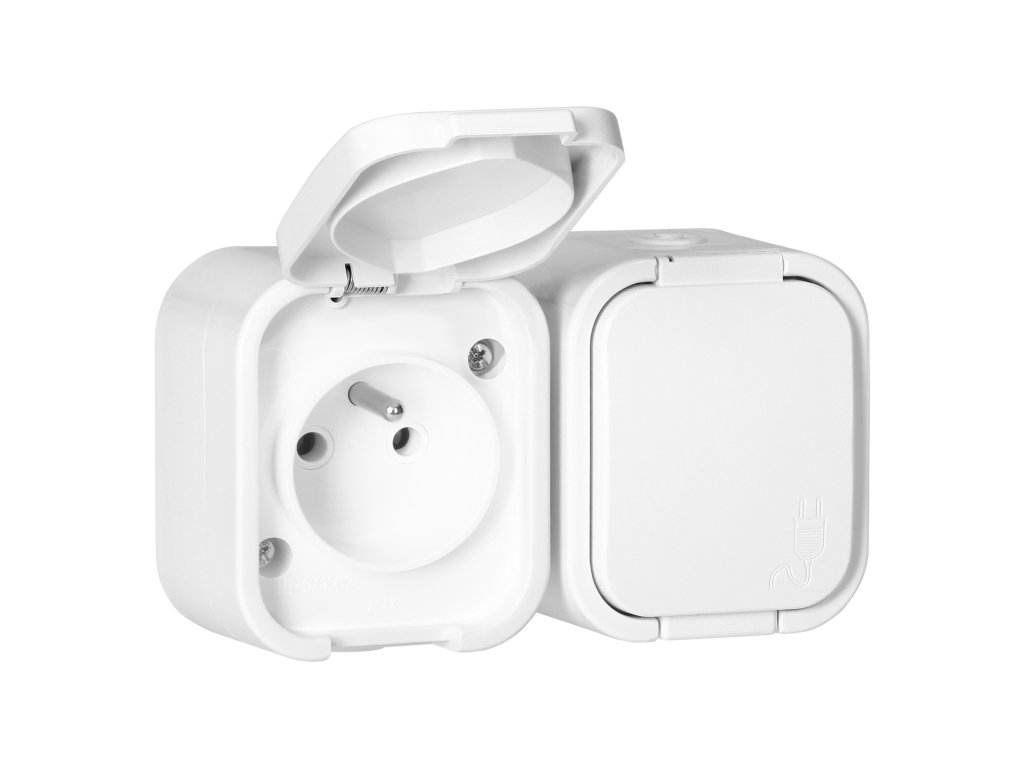 Seria de prize și întrerupătoare B2, cu indice de protecție IP54, rezistentă la praf și umezeală. Seria dispune de o formă atemporală și o carcasă robustă. Perfectă pentru instalare în facilități industriale și locuințe. Întrerupătoarele sunt echipate cu conectori rapizi, în timp ce prizele sunt echipate cu conexiuni tradiționale cu șurub.Priză dublă de tip francez 2x2P+E, rezistentă la stropire, cu capac. Proiectată pentru montare pe suprafață. Va fi potrivită oriunde este necesară protecție împotriva prafului și stropilor de apă (IP54).