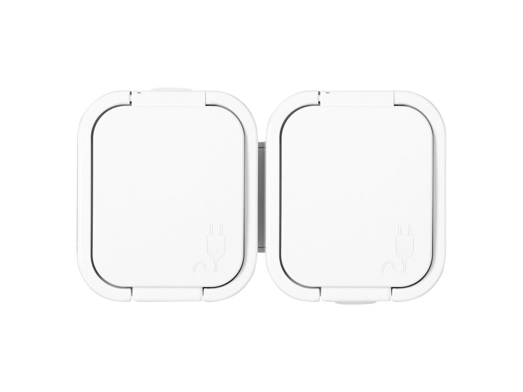 Prize dublă aplicată 2x2P+E, rezistentă la stropire cu capac B2, IP54, NT-6B2, albă
