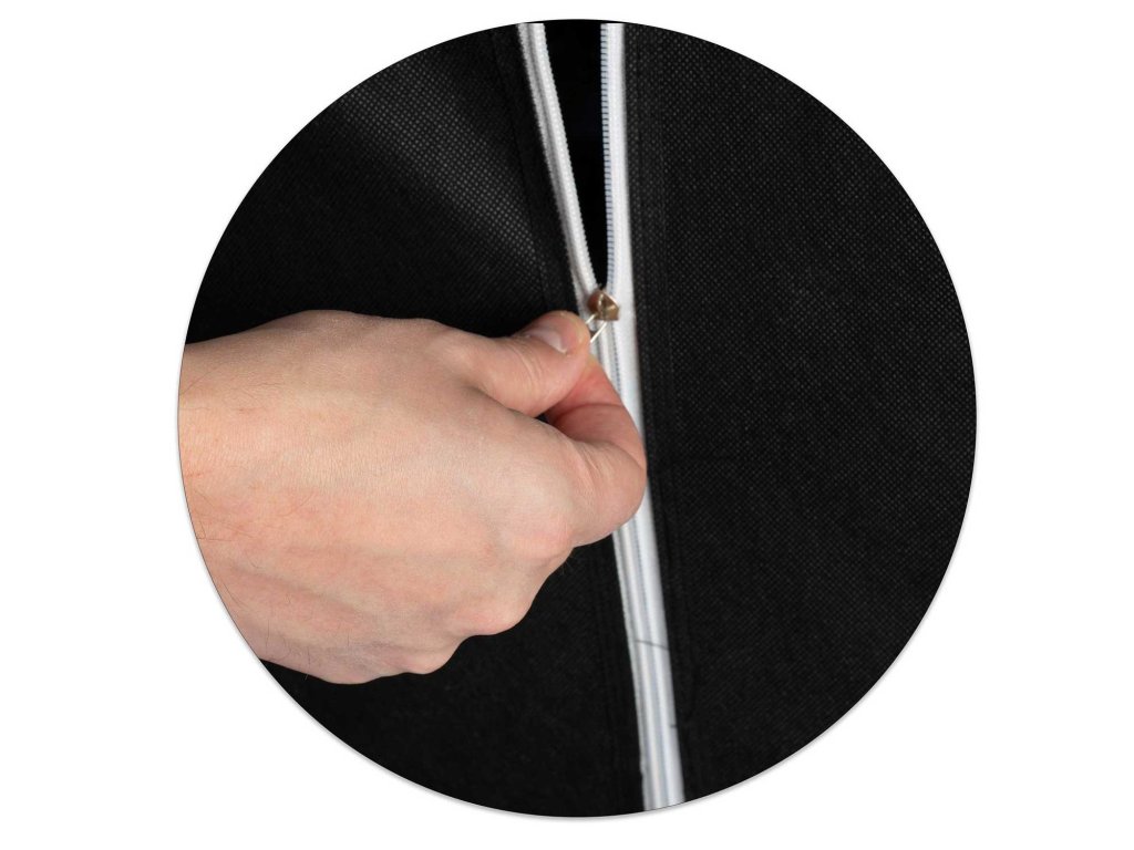 Husă funcțională și practică (cu fermoar) pentru rafturi de depozitare în culoare neagră, care servește excelent ca protecție împotriva prafului etc. în: