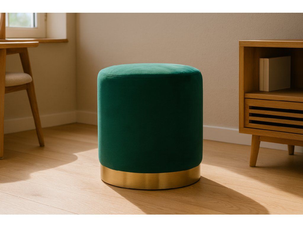 Puf din velur pe suport de aur 35x40 cm în culoare verde închis este un obiect de mobilier elegant și funcțional pentru living, dormitor sau hol. Oferă confort, stil și durabilitate, servind ca loc de șezut, suport pentru picioare sau accent decorativ.