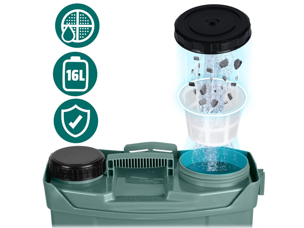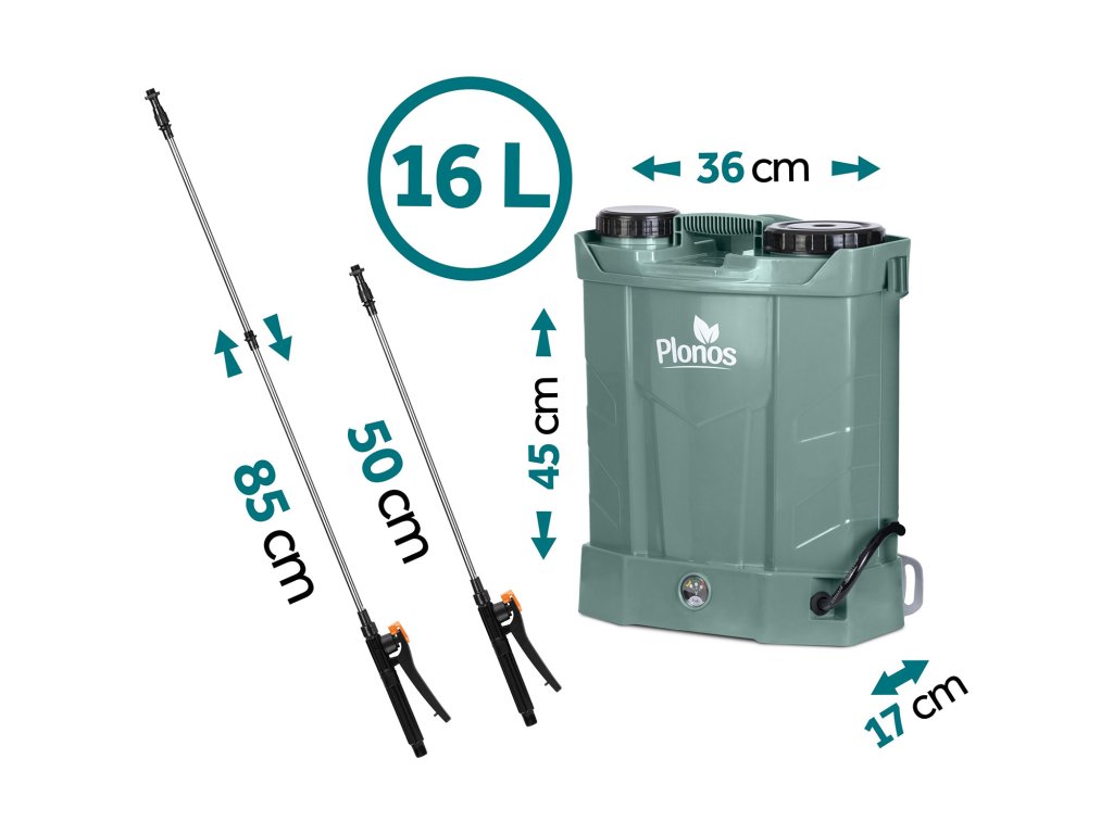 Pulverizator cu acumulator 16 l Plonos Plonos: 460201 O grădină luxuriantă și sănătoasă ca o medalie! ✅ Înaltă eficiență și durată lungă de lucru a pulverizatorului — acoperire rapidă chiar și pentru grădini mari! ✅ Curele pentru a fi purtate pe spate și mânere — facilitează munca și oferă confort, ceea ce face ca munca să fie mai ușoară și mai plăcută! ✅ Protecție eficientă împotriva dăunătorilor și bolilor — cheia pentru recolte mai bune și un aspect mai sănătos al plantelor. ✅ Certificat CE. ✅ Rezervor fabricat din material PE durabil, rezistent la substanțe chimice de grădinărie. Set complet de 13 piese ▶▶▶ Îngrijește grădina ca un profesionist. Curele confortabile și moi, cu reglaj. Sită pentru filtrarea impurităților. Acumulator cu încărcător — până la 8 Ah. Indicator LED al nivelului de încărcare al acumulatorului. Priză pentru alimentare. Comutator și buton de reglare a motorului. Mâner cu blocare de strângere — pentru un confort sporit în timpul lucrului îndelungat. ✅ Pulverizator cu acumulator cu duze interschimbabile pentru un consum redus de substanțe chimice Dozarea și distribuirea precisă a substanțelor de protecție a plantelor reduce consumul acestora, ceea ce este mai ecologic și mai economic. Înaltă eficiență și durată lungă de lucru permite acoperirea rapidă a suprafețelor mari, ceea ce este deosebit de important în grădinile mai mari. ▶▶▶ 4 duze diferite pentru o muncă mai confortabilă Duza de stropire: excelentă pentru plante delicate care necesită pulverizare subtilă. Asigură o distribuție uniformă a ceții. Duza cu jet plat: permite ajustarea precisă a fluxului de lichid, ideală pentru sarcini exigente, cum ar fi stropirea pomilor fructiferi sau arbuștilor. Duza reglabilă cu patru orificii: permite ajustarea precisă a fluxului de lichid pentru diferite tipuri de plante, ideală pentru utilizarea generală în grădină. Duza cu cap dublu: asigură acoperirea eficientă a unor suprafețe mai mari, excelentă pentru stropirea straturilor late, oferind două fluxuri uniforme. ✅ Acumulator sigur, încorporat de 12 V 8 Ah Timp de lucru de aproximativ 9 ore. Încărcare ușoară. Funcționare silențioasă a motorului. ✅ Măsurător al nivelului de încărcare al acumulatorului LED-urile indică nivelul de încărcare al acumulatorului. Când acumulatorul este descărcat, este indicat printr-un LED roșu și un semnal sonor. ✅ Încărcător AC/DC plug-in Intrare AC 220-240 V - 50 Hz. Intrare DC 12 V. ✅ Priză de încărcare protejată și etanșată. ✅ Prevenirea înfundării duzelor: sita de filtrare capturează eficient impuritățile și particulele mai mari care ar putea înfunda duzele pulverizatorului. ✅ Capacitate de 16 litri: rezervorul mai mare este deosebit de util în grădinile mari sau pe câmpuri cultivabile. ✅ Construcție ușoară — ușor de ridicat și de pus pe spate. ✅ Curele groase și întărite cu reglaj — le poți adapta la nevoile tale sau le poți îndepărta. Fixate cu carabiniere. ✅ Suport suplimentar lombar pentru confort sporit. ✅ Pregătește-te pentru transformarea grădinii tale! Specificații: dimensiuni: 45 x 36 x 17 cm, material: PE (polietilenă), acumulator: plumb-acid, 12 V, 8 Ah, presiune maximă: 5.5 bari, debit maxim: 3,1 l/min, lungimea lancei: până la 85 cm, capacitate: 16 l, timp de lucru: 9 h, greutatea pulverizatorului: 6 kg. ✅ Bucură-te de o grădină sănătoasă și verde pe tot parcursul sezonului cu pulverizatorul de la marca de încredere Plonos!Parametri suplimentari