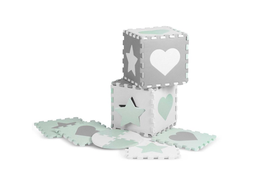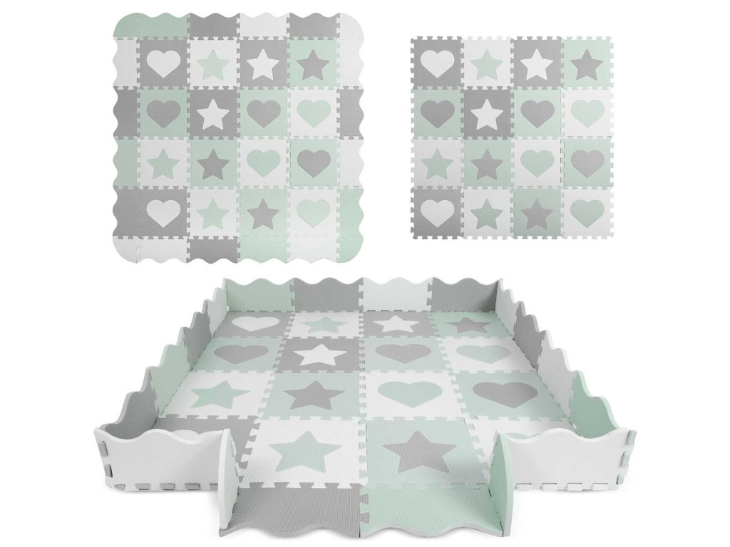 Puzzle din spumă pentru podea 151x151cm 16 buc., gri și mentă