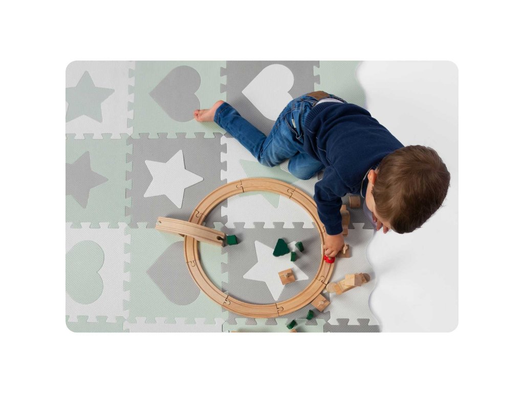 Covorașul din spumă Ricokids este un set de puzzle cu dimensiuni de 30 x 30 cm ± 2 cm, pe care îl puteți asambla împreună cu bebelușul, în orice configurație.
