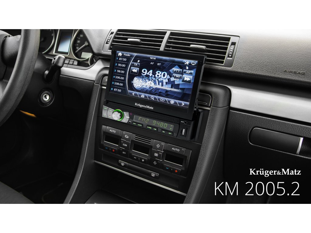 Frumusețea ascunsă Visați la un radio auto cu un ecran mare, dar nu aveți spațiu pentru acesta în mașina dvs  Kruger&Matz KM 2005.2 va rezolva problema! Acest dispozitiv 1DIN are un ecran tactil glisant de 7". Convingeți-vă singur cum se potrivește perfect în interiorul mașinii dumneavoastră!