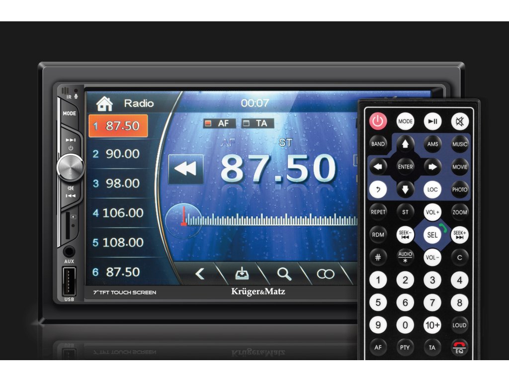 Cine spune că muzica din mașină este aleasă de șofer Împreună cu radio-ul auto Kruger&Matz KM 2007 găsiți în set o telecomandă, care permite controlul dispozitivului și de către pasagerii de pe locurile din spate.
