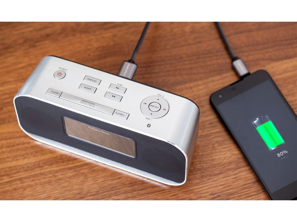 Ascultați muzicăDispozitivul are intrare Aux-in, port USB și suportă conexiune Bluetooth. Datorită acestora, funcțiile sale vor satisface chiar și cei mai exigenți utilizatori. Noul radio-rev deșteptător Kruger&Matz oferă posibilitatea de a se conecta la dispozitive externe și de a reda muzica de pe acestea în funcție de nevoile individuale. KM1150 este la dispoziția dumneavoastră, indiferent dacă preferați conexiunea prin cablu sau nu.