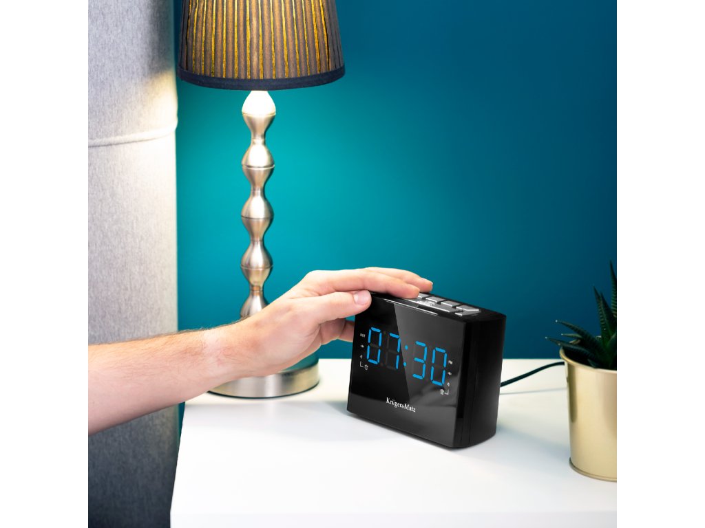 Pentru cei care mai au nevoie de câteva momente pentru a se trezi, funcția de amânare este alegerea ideală. Ceasul deșteptător și radioul de la Kruger&Matz este echipat, de asemenea, cu un temporizator care vă permite să adormiți liniștit la postul de radio preferat, deoarece dispozitivul se va opri automat după timpul setat.