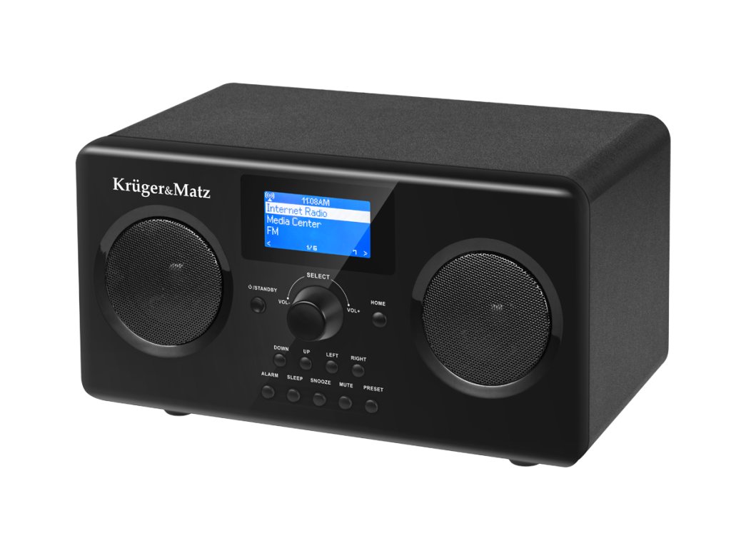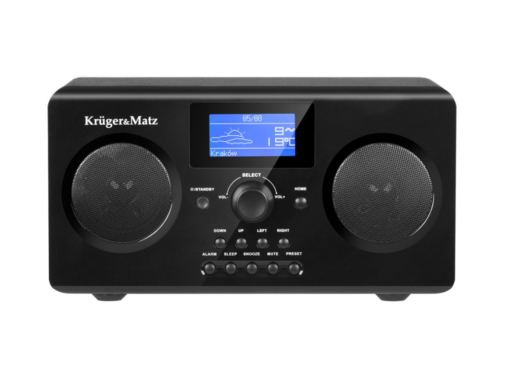 Un singur dispozitiv, multe posibilitățiIndiferent de genul de muzică pe care îl asculți, printre cele zece mii de posturi de radio pe internet pe care le receptează radio Kruger&Matz KM 812, vei găsi fără îndoială ceea ce cauți. În plus, dispozitivul oferă acces și la posturi standard FM. De asemenea, datorită intrării AUX, poți asculta lista de redare salvată pe telefon sau playerul MP3, iar prin intermediul serverului UPnP ai posibilitatea de a reda muzică și de la calculator.