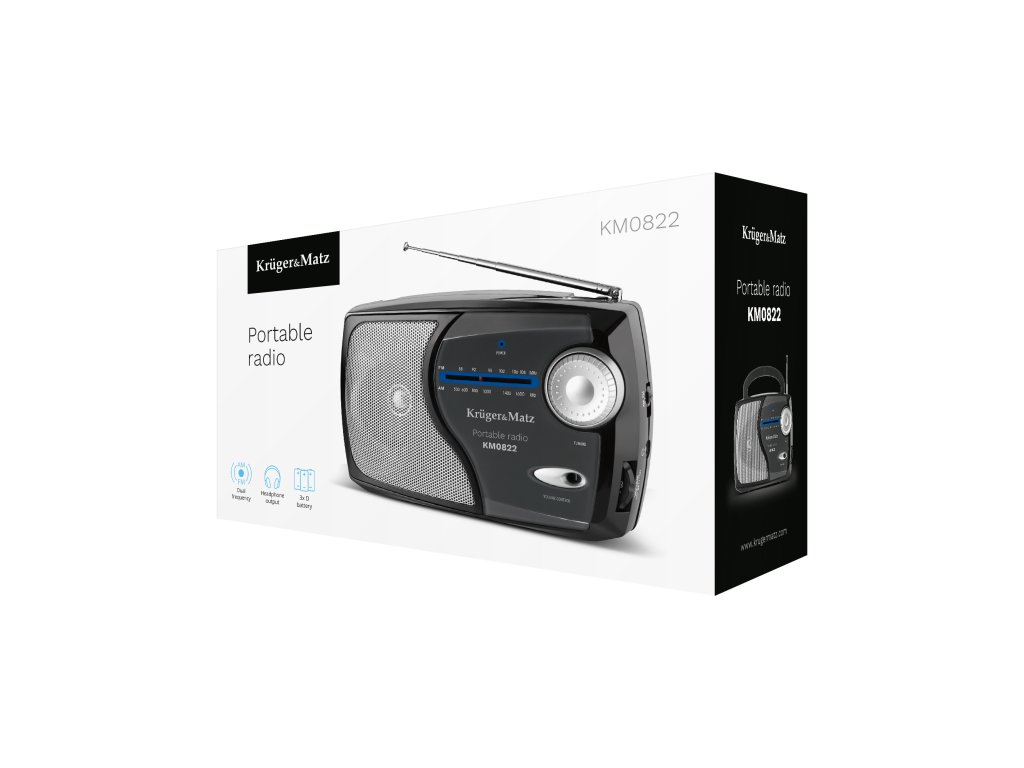 Radio KM 822 este echipat cu un tuner analogic AM/FM care garantează posibilitatea de a recepționa multe posturi radio populare. Este important faptul că, datorită panoului clar cu frecvențe și butonului practic pentru căutarea posturilor de radio, micul radio Kruger&Matz este foarte intuitiv de utilizat.