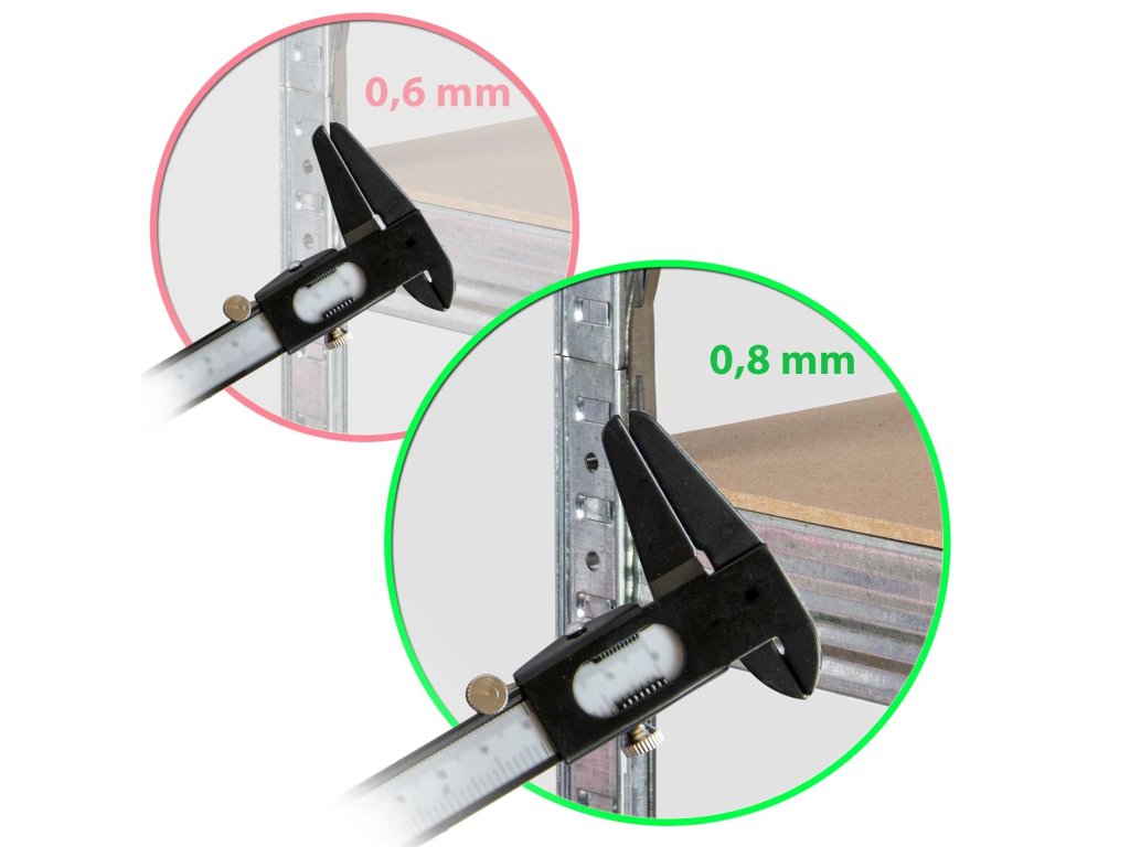 Profilurile raftului au o grosime de până la 0,8 mm (rafturile au de obicei o grosime a profilului de 0,5 până la 0,6 mm)!
