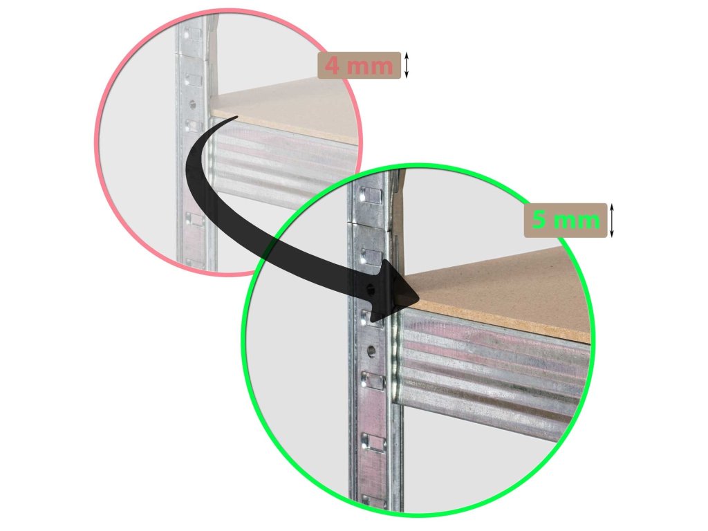 Rafturile din MDF au acum o grosime de până la 5 mm - majoritatea rafturilor concurente au rafturi de 4 mm grosime.