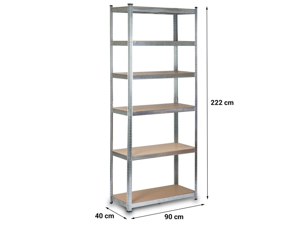 Raftul constă din 6 rafturi, pe care puteți plasa produse, cutii sau aparate cu o capacitate maximă de încărcare de 150 kg pe fiecare raft.