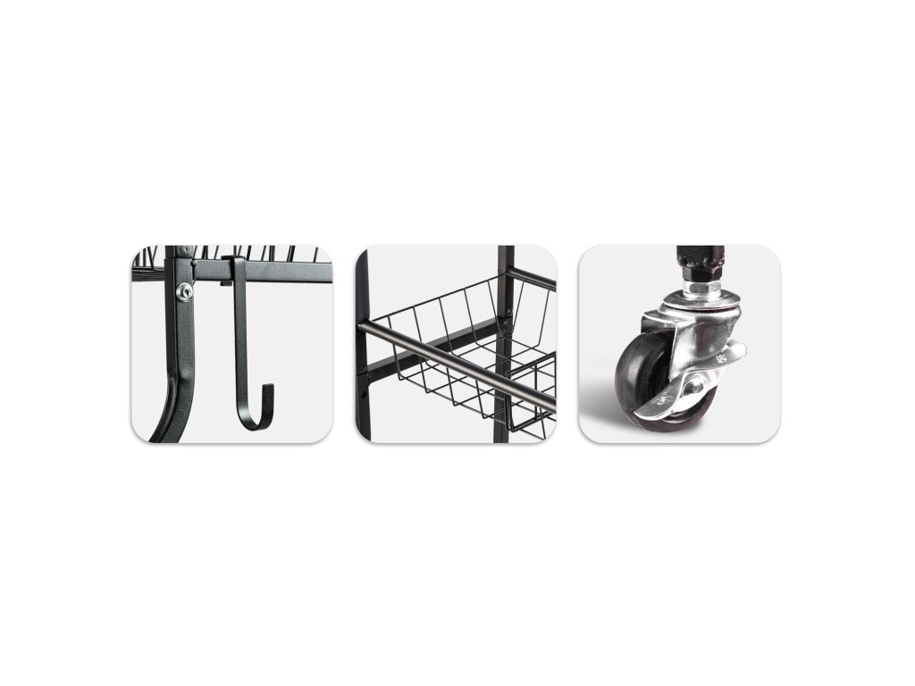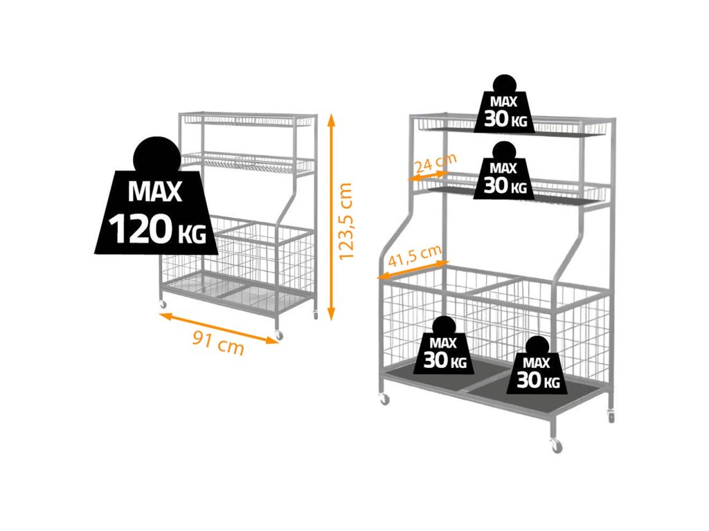 Raftul este compus din 10 rafturi, pe care puteți plasa obiecte cu o greutate totală de până la 120 kg .