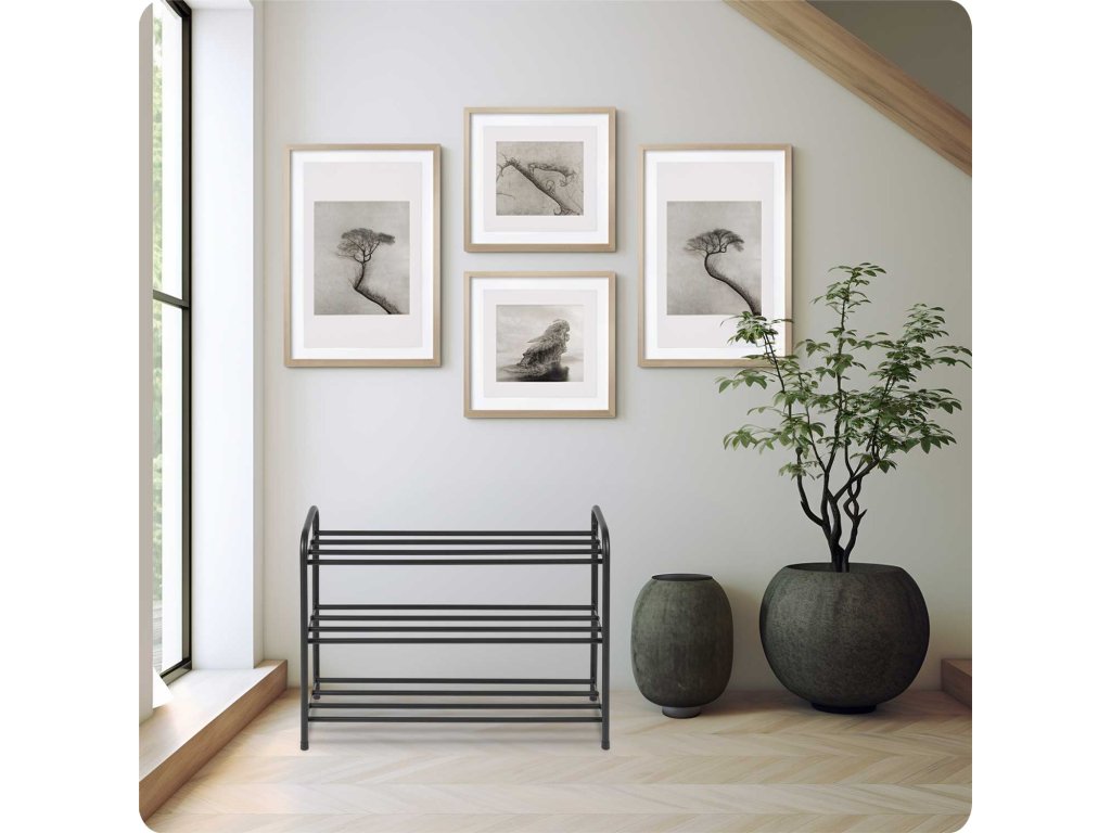 Funcțional: Cele trei nivele de rafturi permit depozitarea multor perechi de pantofi, asigurând ordine și acces ușor la perechile preferate.