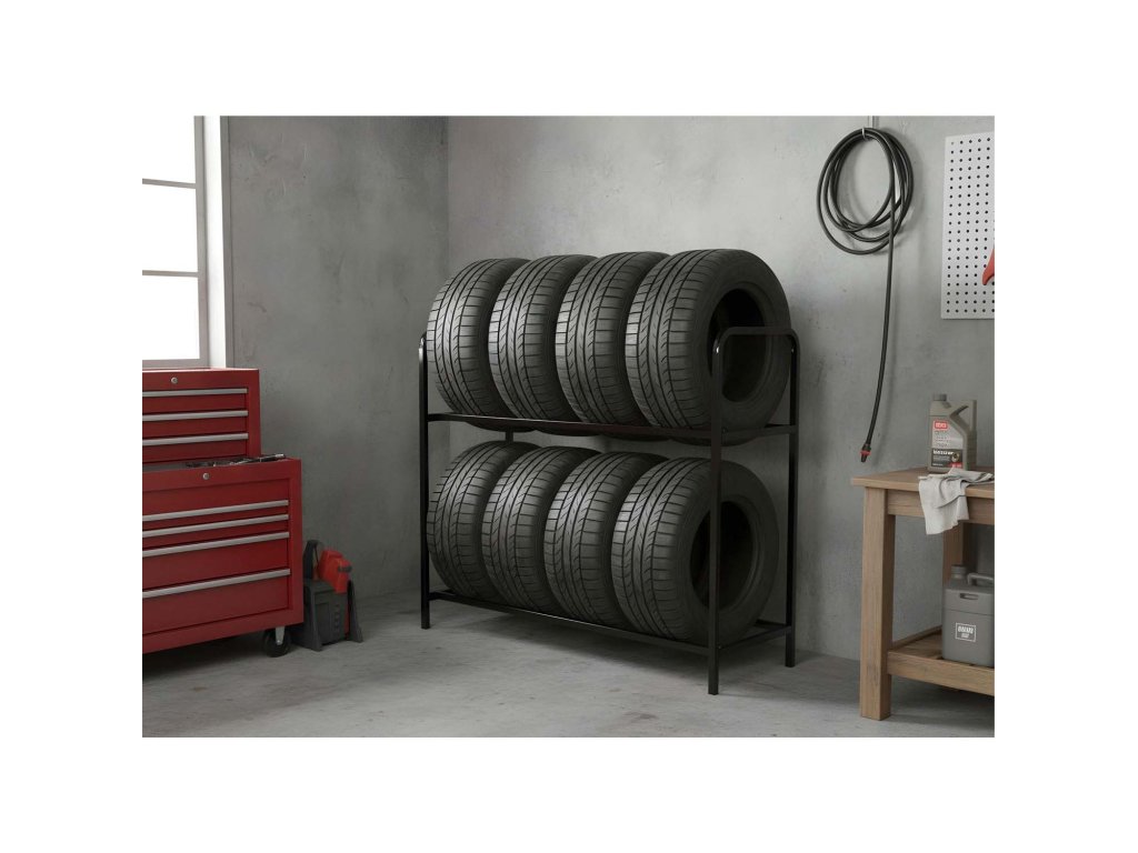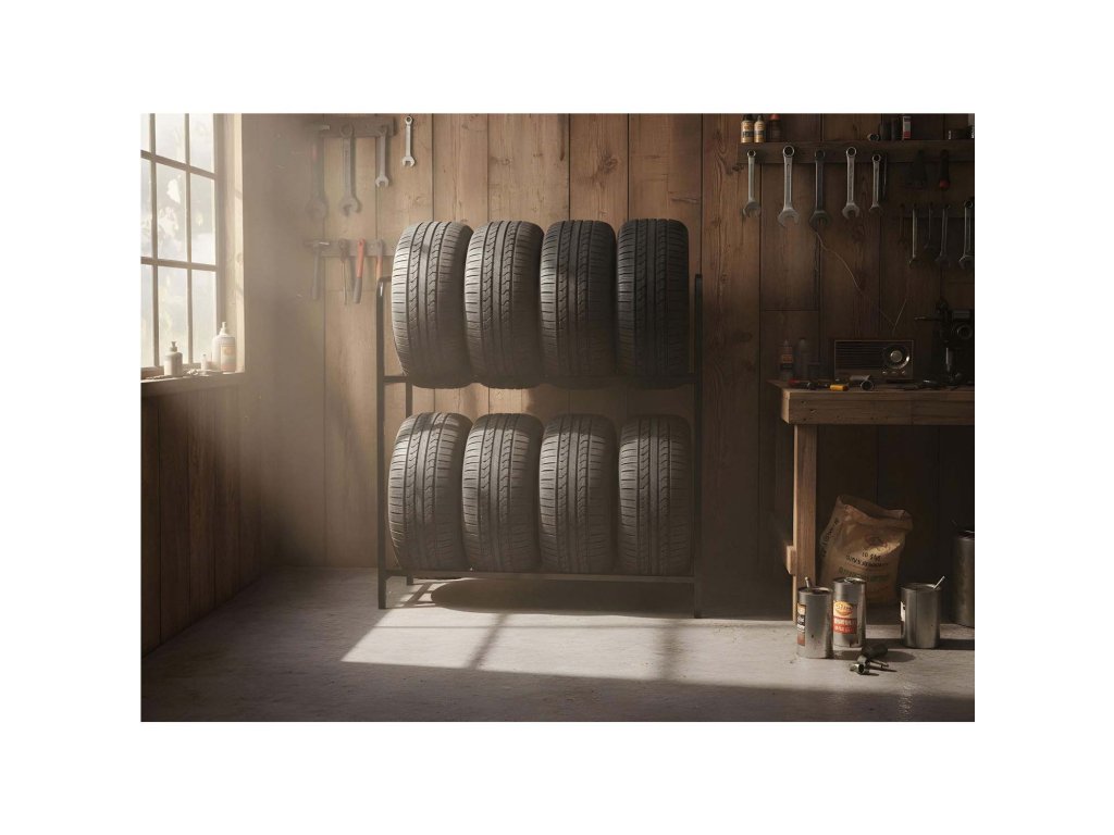 Economisire de spațiu – suportul compact pentru anvelope permite depozitarea a până la 8 bucăți fără dezordine.