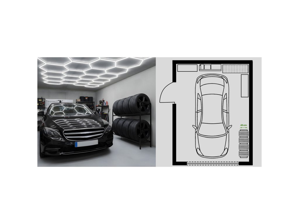 - Raft rezistent pentru roți și anvelope, ce facilitează depozitarea.