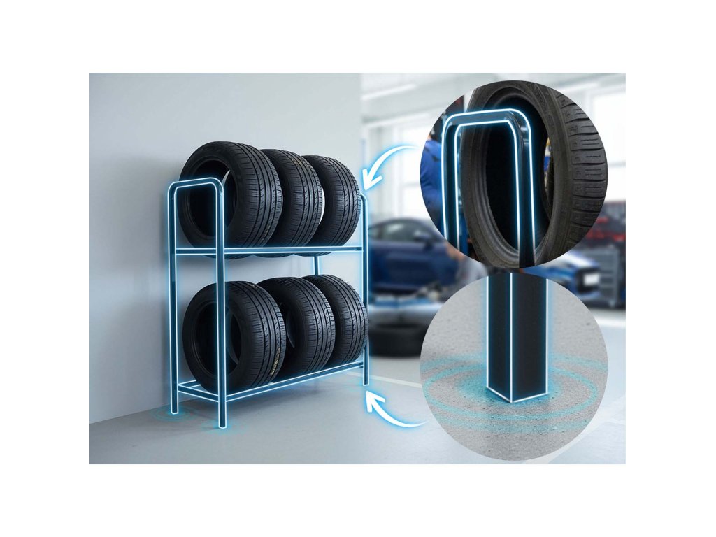 Depozitare sigură și durabilă a anvelopelor – construcția metalică previne deformările și protejează banda de rulare.