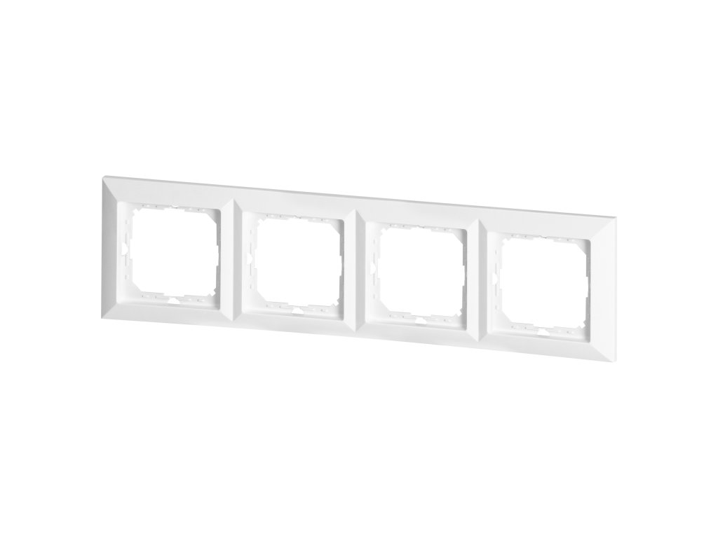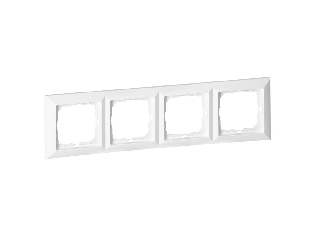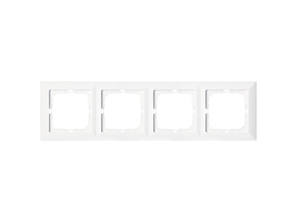 Seria modulară cu un sistem de plăci cadru simetrice (pentru 1-, 2-, 3-, 4-, 5-module) permite montarea produsului atât pe orizontală, cât și pe verticală. Mecanismul modern de conectare rapidă (firele se conectează prin împingerea directă în corp) asigură instalarea și demontarea sigură a firelor. Prizele sunt echipate cu conexiuni cu șurub tradiționale. Designul intern al terminalelor garantează o conexiune sigură a firelor de la 0,75 mm² la 2,5 mm². Grila de montare robustă și elementele de calitate superioară, autoretractabile, permit o instalare stabilă și sigură în cutie. Elementele speciale de arc facilitează fixarea cadrului în corp.Cadru cvadruplu pentru seria Pearl. Trebuie utilizat în interior (IP20).