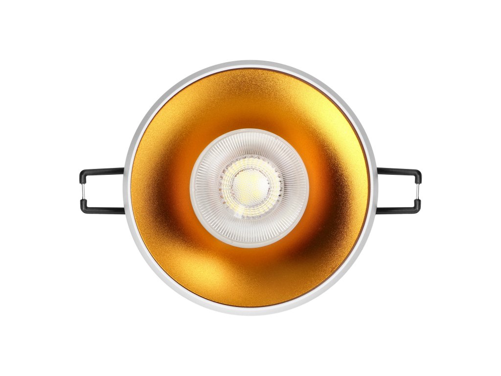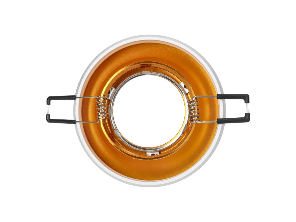 Unul dintre principalele avantaje ale ramei noastre este versatilitatea sa. Fie că intenționați să iluminați sufrageria, baia, bucătăria sau biroul, această ramă este un accesoriu excelent pentru orice spațiu.Rama rotundă alb-aurie pentru spot GU10 este proiectată să se potrivească perfect în diverse stiluri de interioare, fie că este vorba despre un mediu modern, clasic sau minimalist.